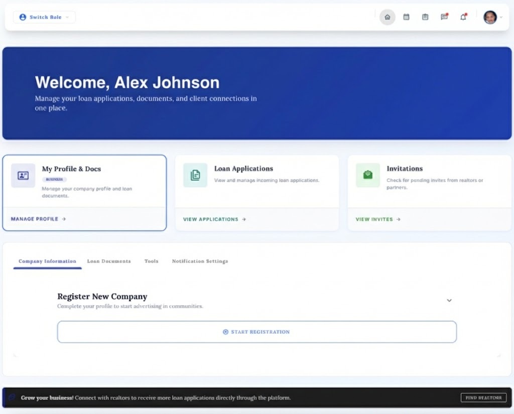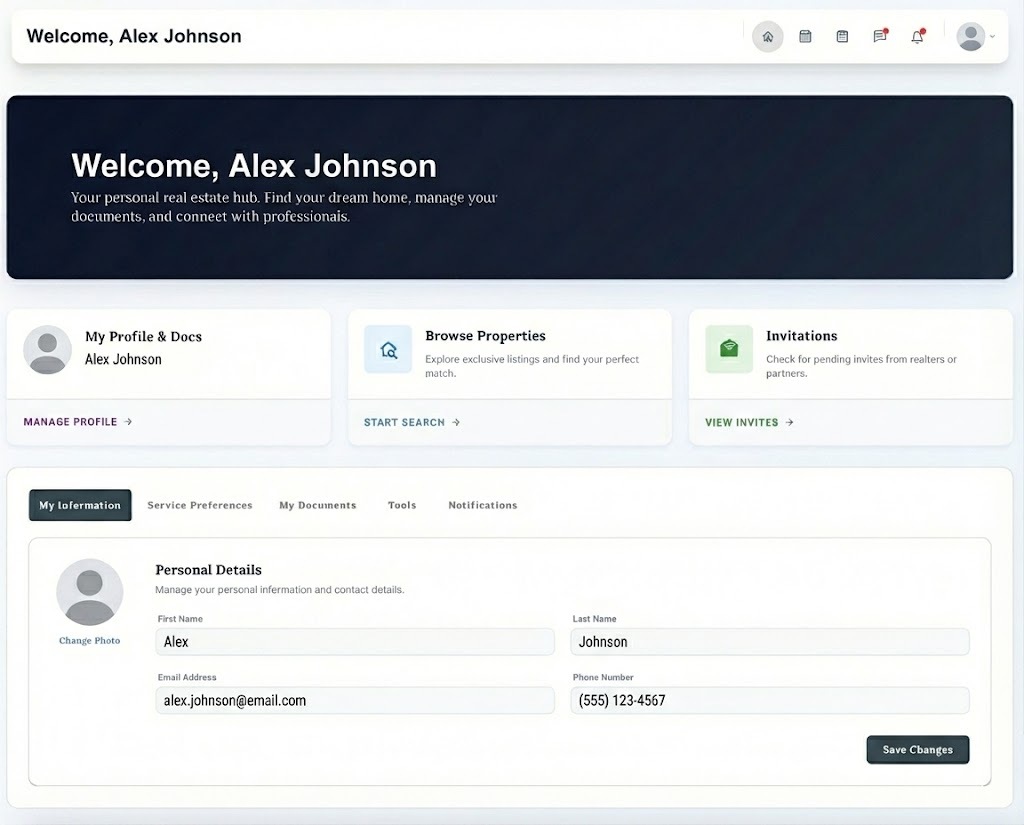 The central nervous system. Manage clients, track deals, and access community data instantly. When you invite a client, they get their own portal.